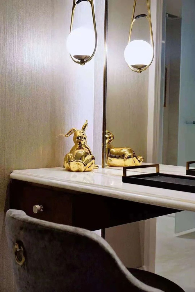 化妆间是适合拍大片的地方,爱丽丝的兔子发着金光陪我上妆 ▼