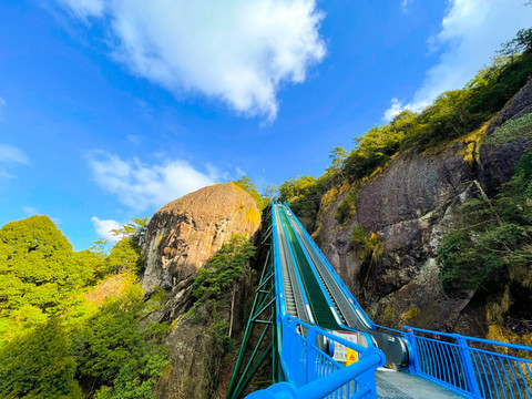 神仙居大概是我去过唯一一个爬山不累的景区,进入景区以后可以乘坐北海索道,再乘坐一个很高的电梯,便会到达山顶。
