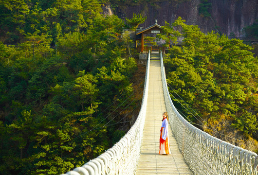 南海桥则是由许多块木头组成的木桥,悬于苍穹之间,连接着两座山峰。