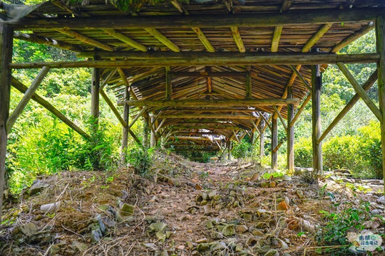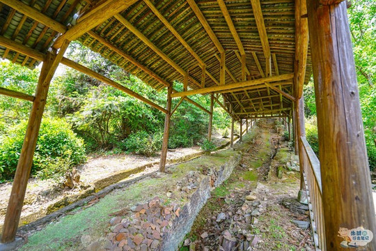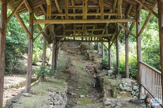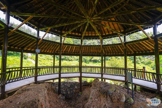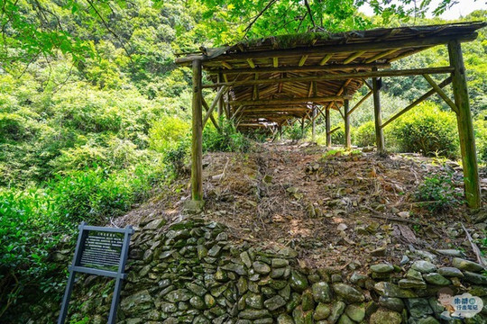 继续往前走,走过一座木板桥来到 东河 的对岸,这里便是龙窑遗址分布区域。一号龙窑遗址是南宋时期的斜坡式龙窑,靠山而建,总长19.2米,分为火膛、窑床和烟口三部分;再往前不到五十米的距离有一个圆亭子,四周被茶树紧紧地包裹着,这里便是二号龙窑遗址,据记载它烧窑始于南宋后期,终止于明代中叶,是 瑶里 境内至今发现的烧造时间最久的瓷窑之一;再往前走大概三十米的距离,便是这里最后一个古窑遗址,也就是依山坡地形而建的三号龙窑遗址,其总长48.2米,坡度19.5度,窑床斜长41.7米,宽2米,是迄今为止发现年代最久远,保存最完整,最长的一座龙窑。
