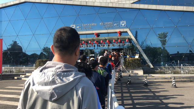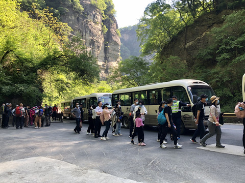 5月2日,早晨7点半从宾馆出来简单吃了早餐,步行到游客服务中心,进入服务中心需要排队检查健康二维码和身份证,穿过游客中心大厅到候车处报身份证核验通行,再乘坐景区大巴上山,虽说是五一,但人不是很多,也没怎么排队就登车了。