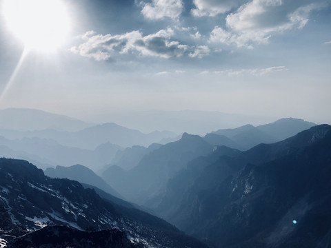 远处的雪山之巅就是拔仙台,近处的山坳是大文公庙。提前漏题