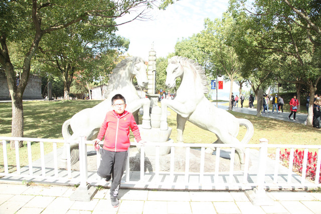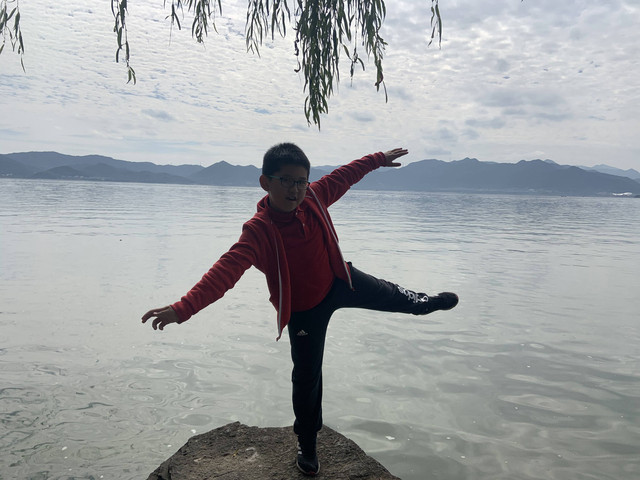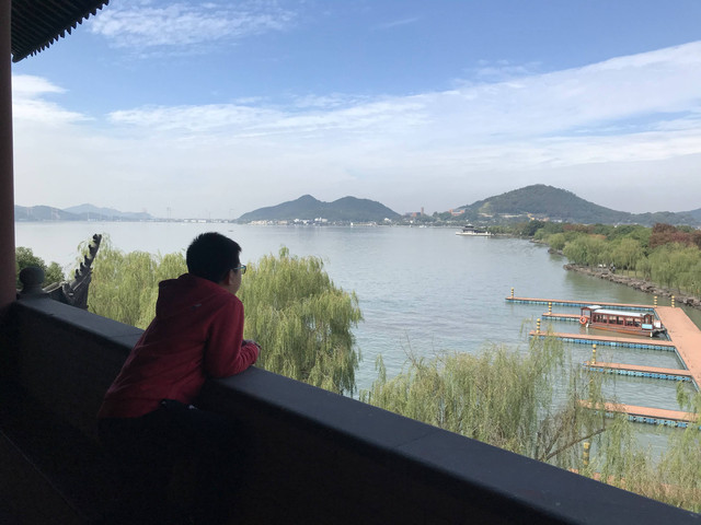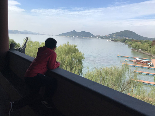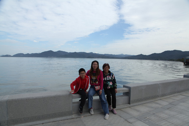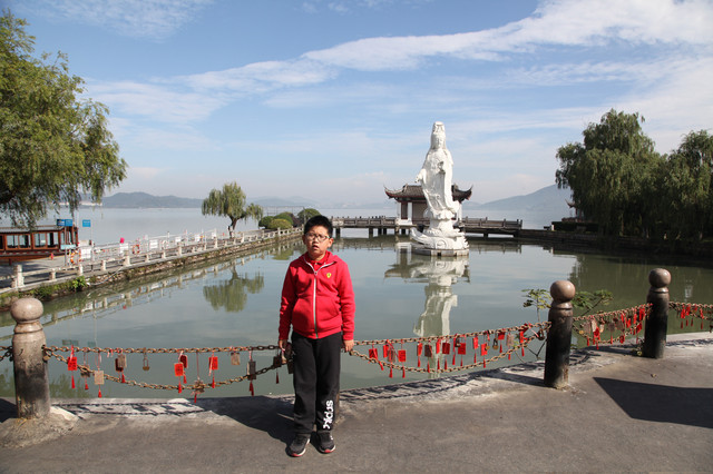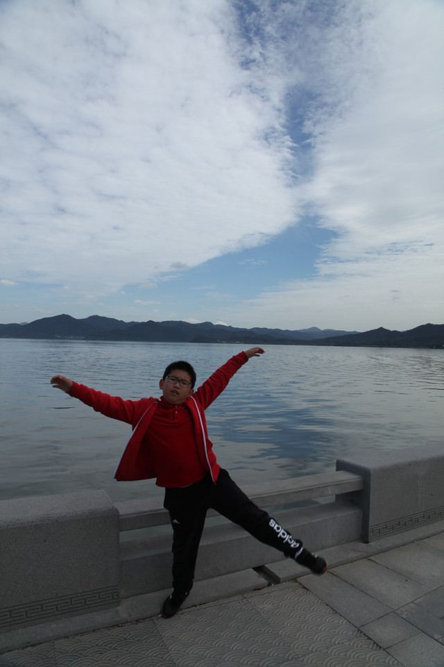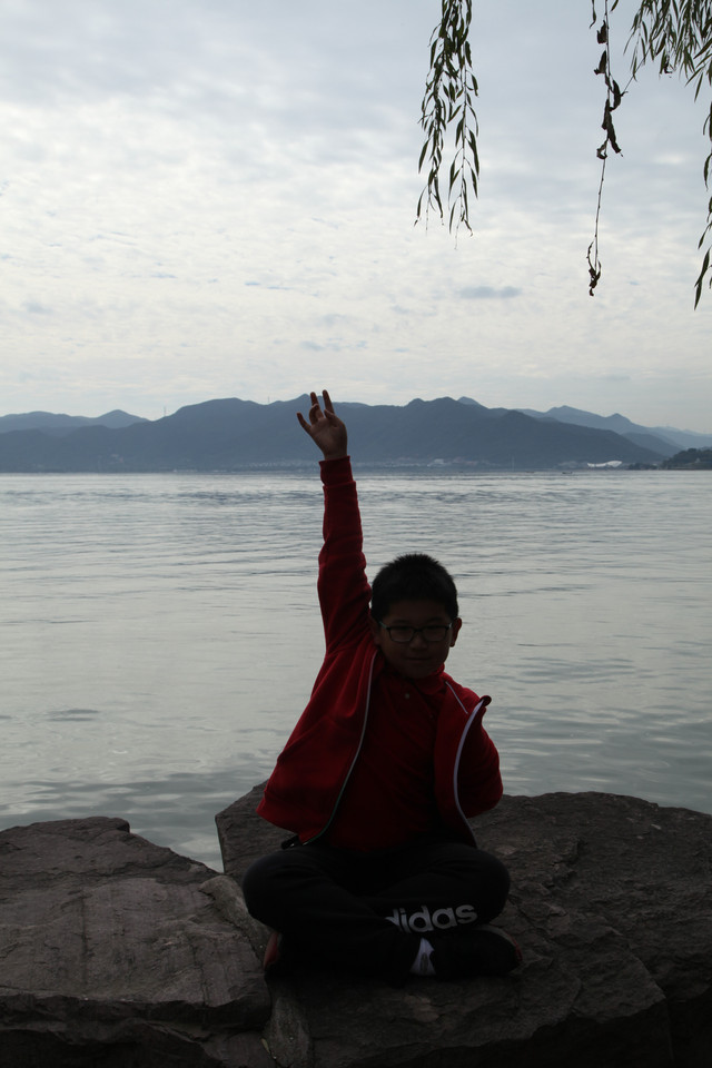 第三天(25/10)早上7:30AM我们下楼去吃早餐,希尔顿酒店的早餐挺丰盛的,龙太子吃得很香。8:15AM退房后,开车奔14公里外的东钱湖而来。