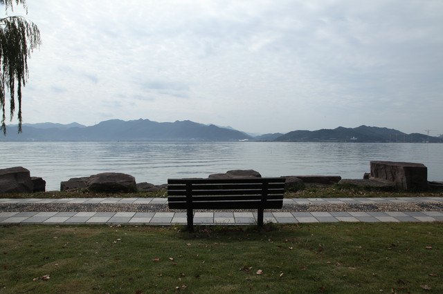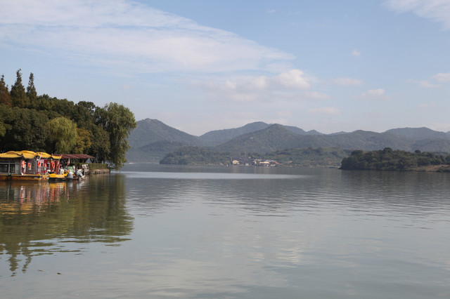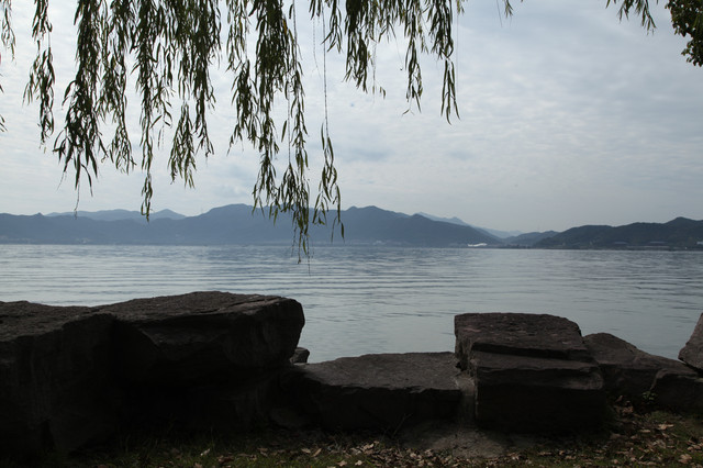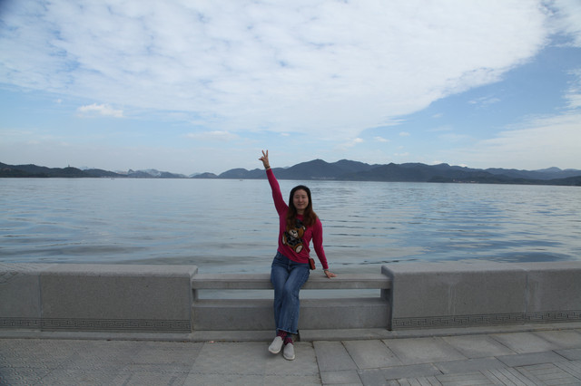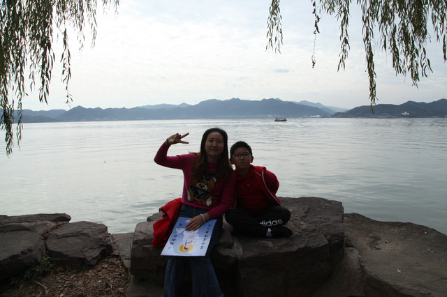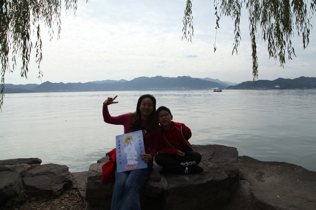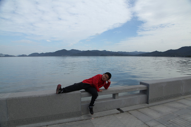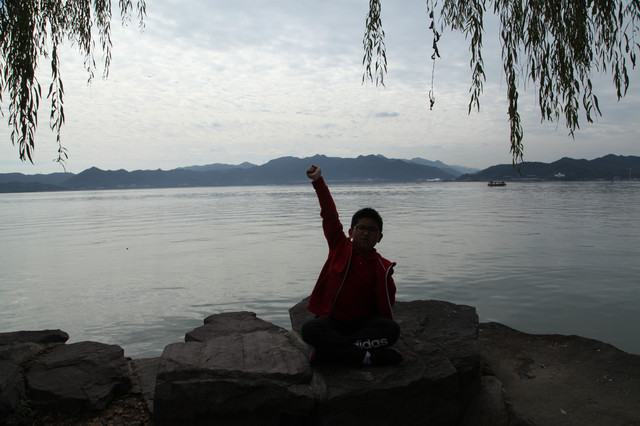 我们选在湖边,就着钱湖山川秀美的风景,拍些照片,然后满意地开车离去。
