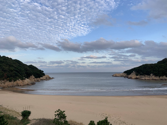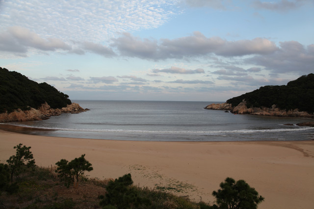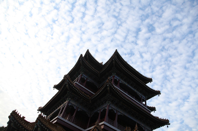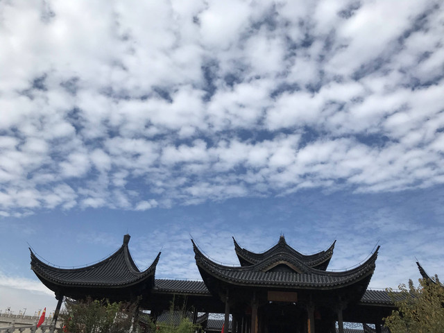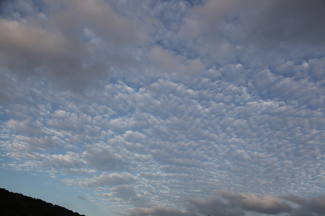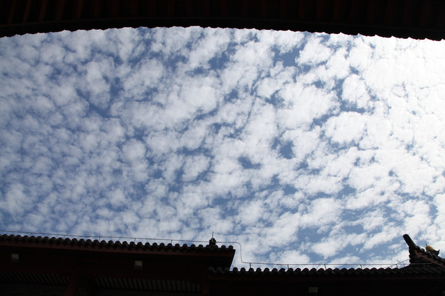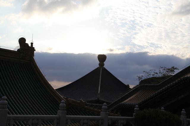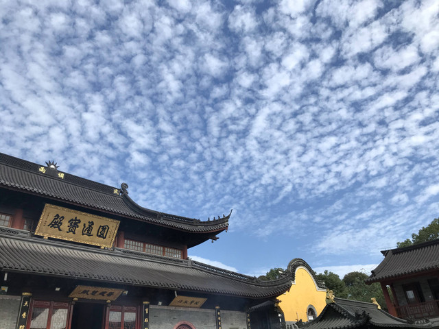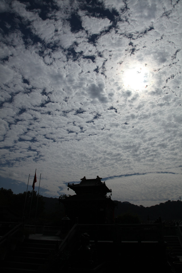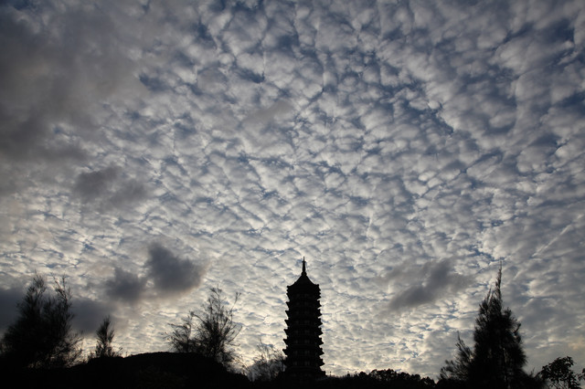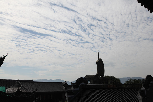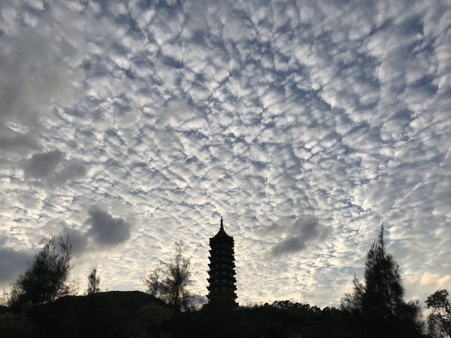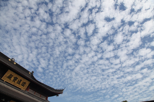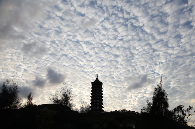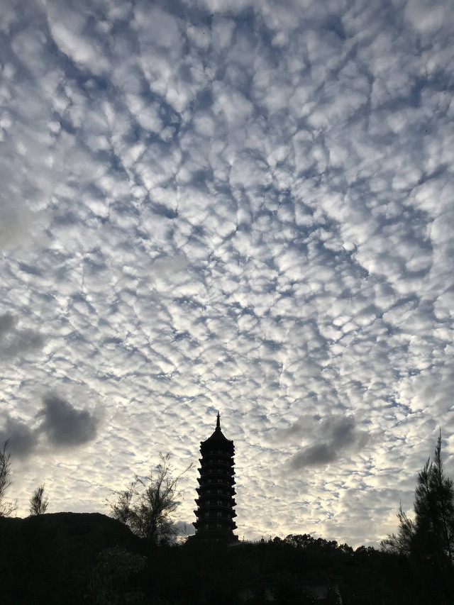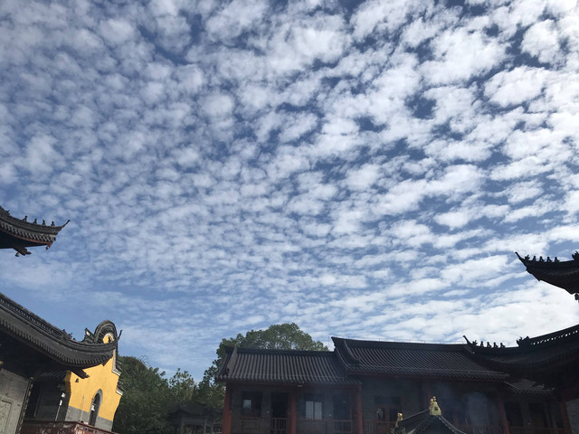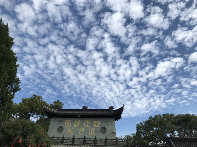 临近黄昏,太阳即将落山,普陀山的天空,布满了神奇的朵朵鱼鳞状的祥云,把整个普陀山的天空,都笼罩在一片祥和的氛围中。