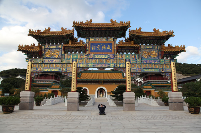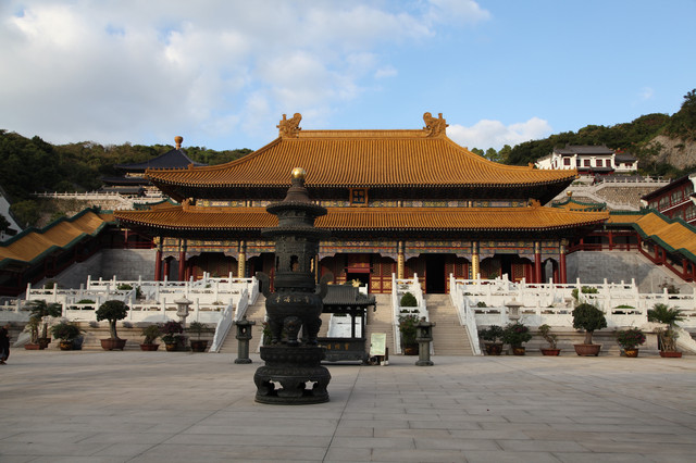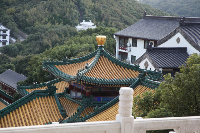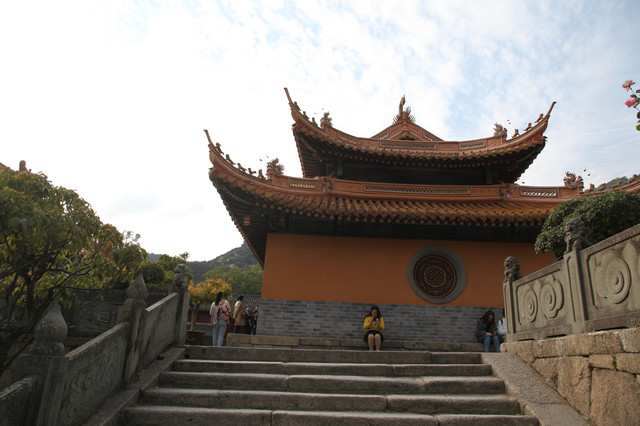 站在宝陀讲寺最高处的大宝楼阁上,凭栏远眺,山岭绿树环抱;步步登高,祥云萦绕山谷,耳畔海浪松涛,梵音清唱,给人无限畅想。