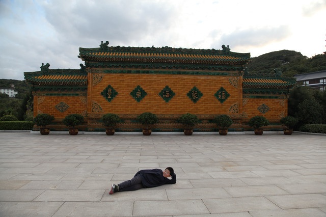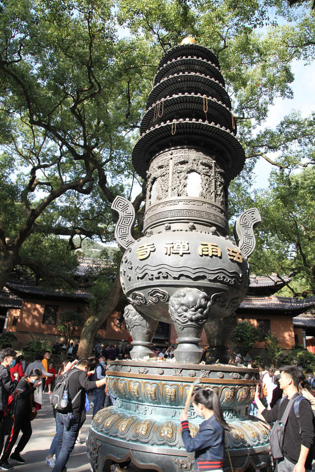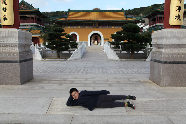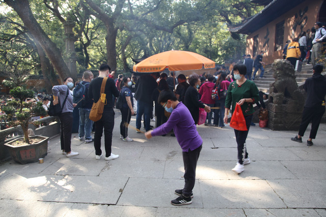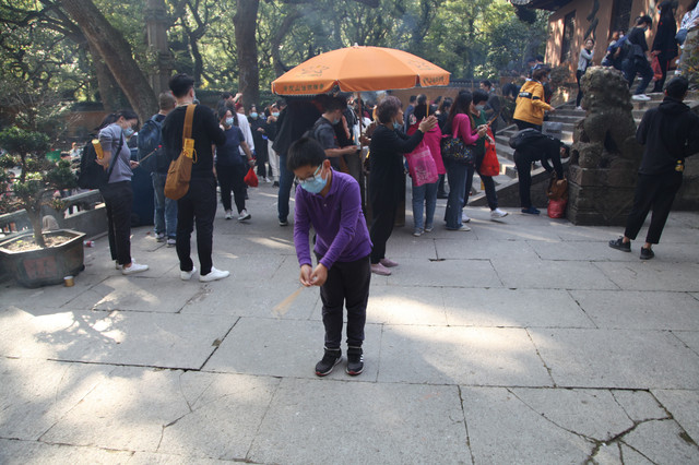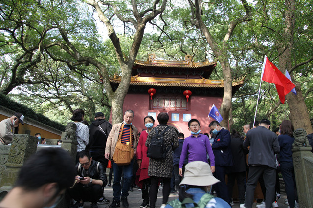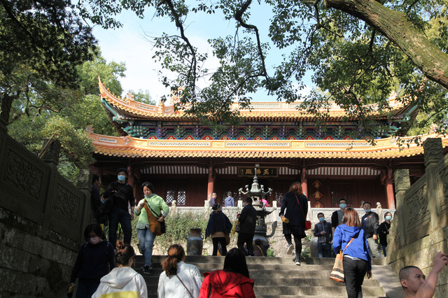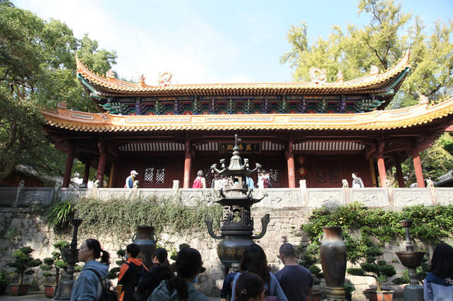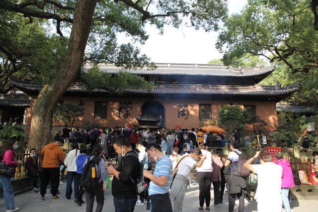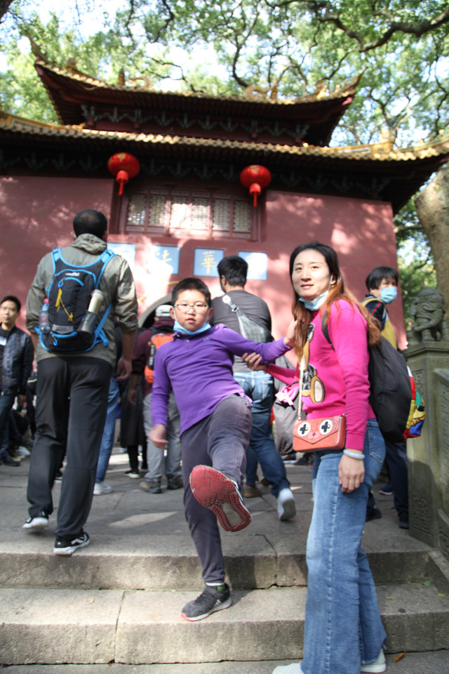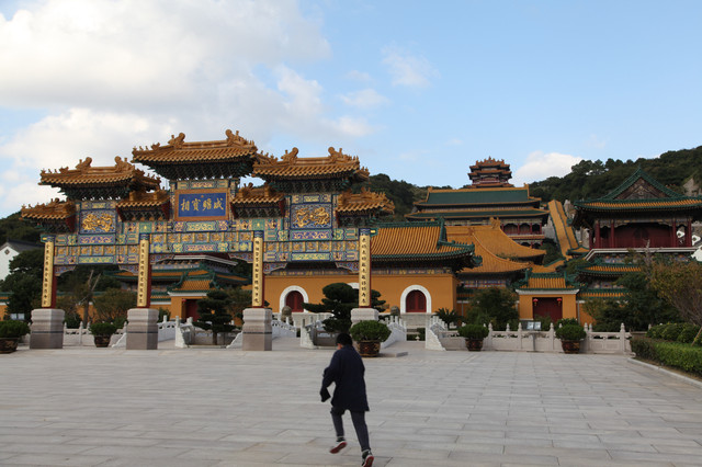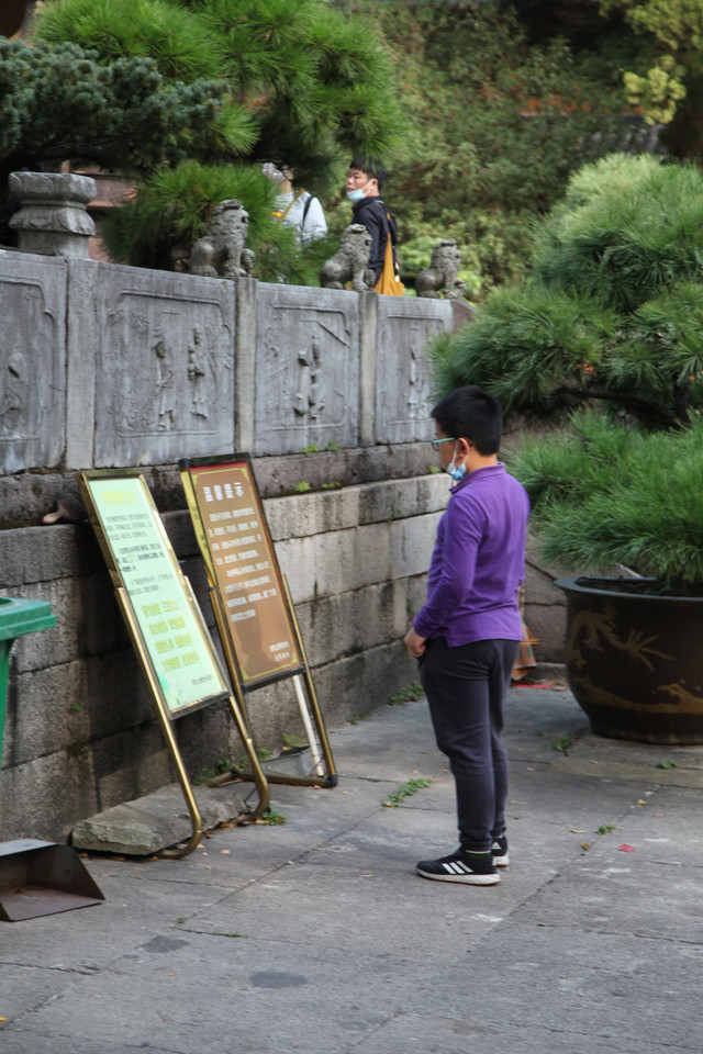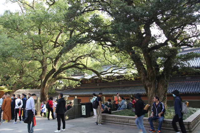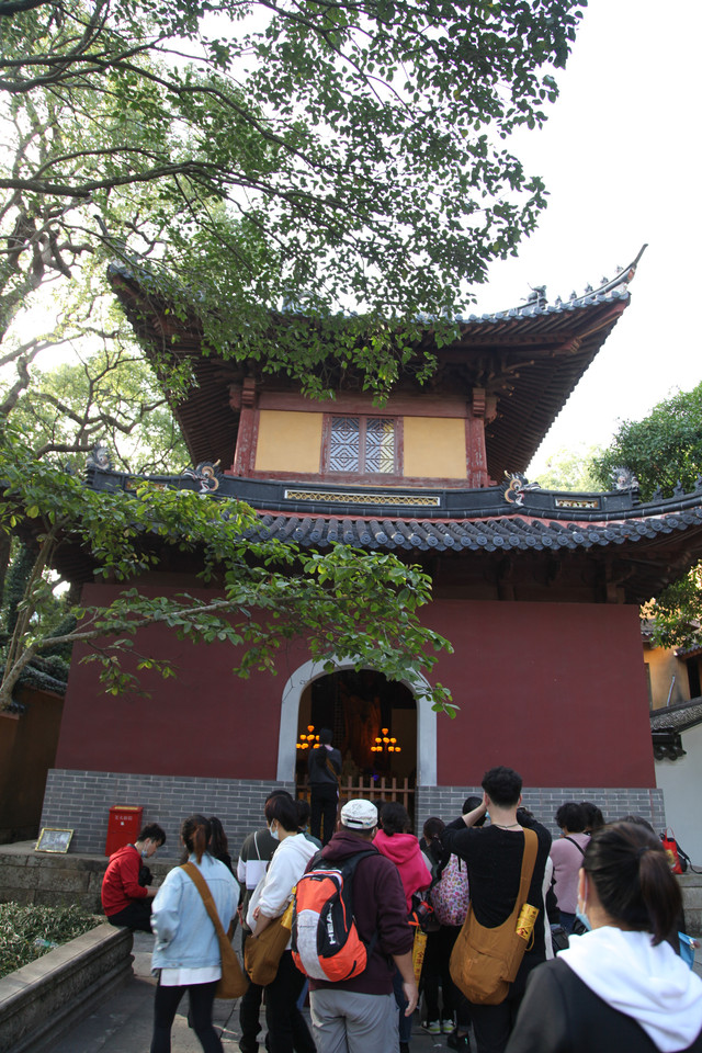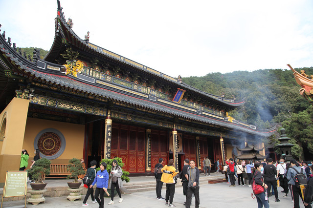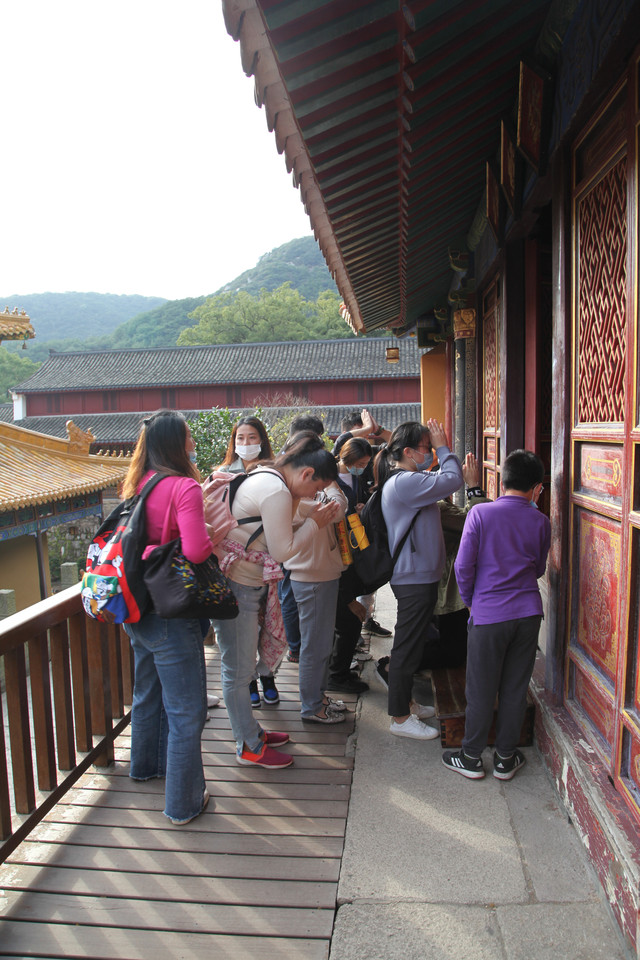 当我们走近题刻“天华法雨”的红色山门时,已经感觉到游人如织,与普济寺收取5元/位的香火钱一样,法雨寺是每位香客都会收取10元/位的香火钱。龙太子走在我们的前面,一马当先。