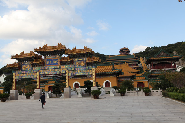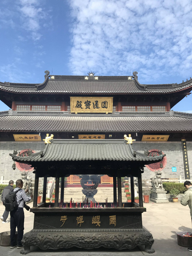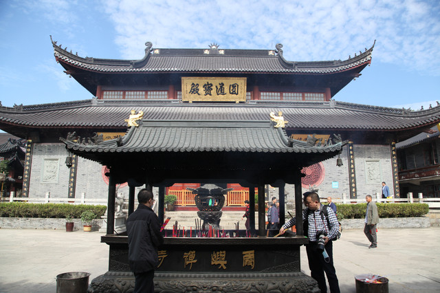 宝陀禅寺西北侧的圆顿戒坛,是江南地区受戒第一大坛。普门讲堂,内设有一个讲经堂,可容纳信众800余人听经说法。记得前次来普门讲堂时,正巧遇到法会,僧众云集,盛况空前,至今依然历历在目。