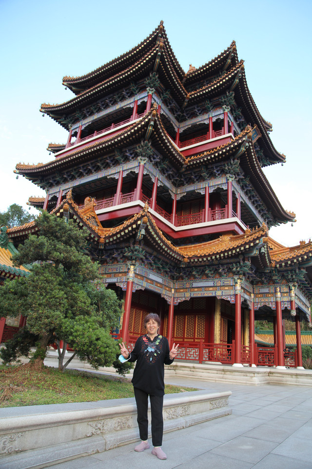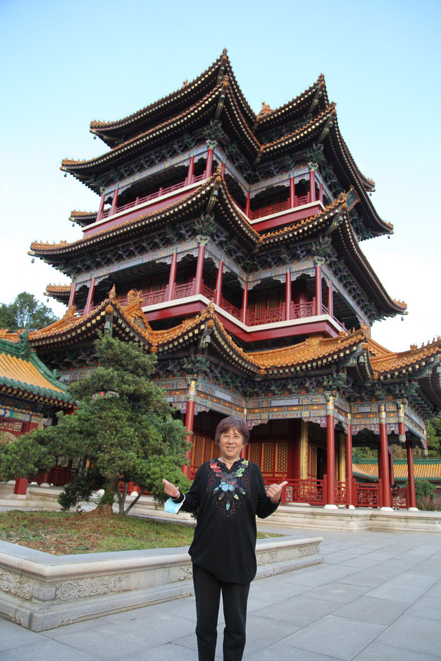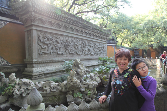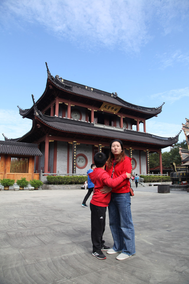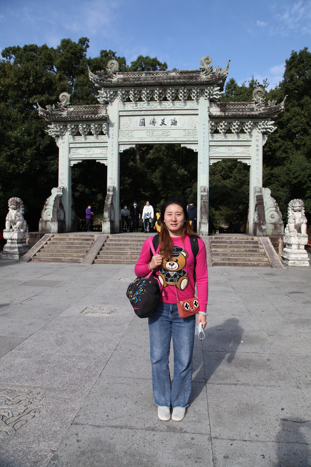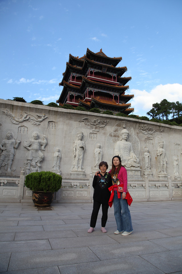 在圆通宝殿门口,外婆和娘子与寺庙里的一位上海阿婆居士又见面啦。几年前,我们有一回来东钱湖霞屿禅寺(小普陀)请香还愿时,认识了这位上海阿婆。几年未见面了,阿婆第一眼就认出了我们,大家相谈甚欢,叙旧道安,这也是一种美好的佛缘吧。