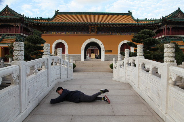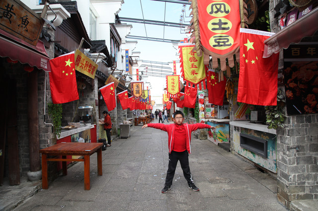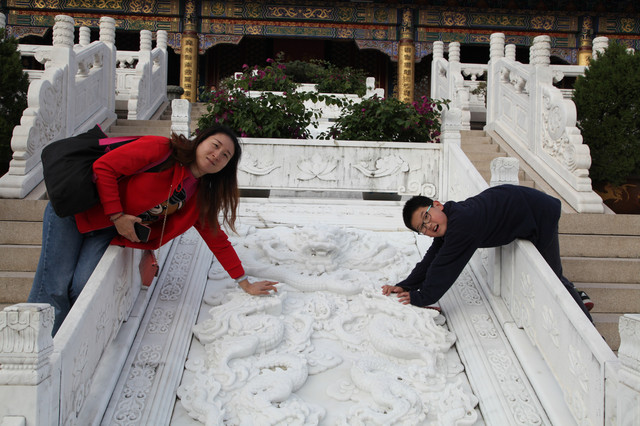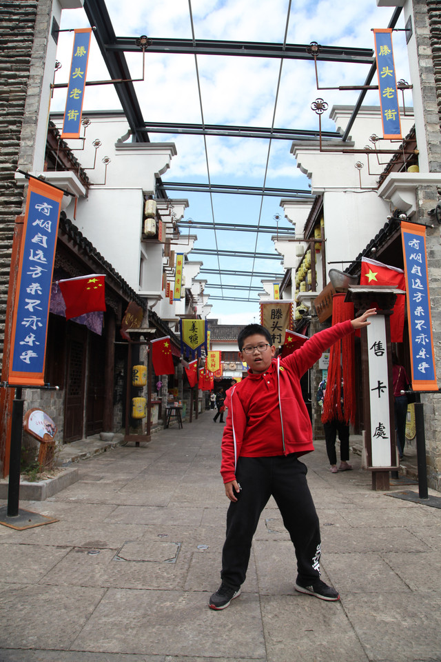 龙太子,从我眼前一溜烟跑过,直奔“咸瞻宝相”的大牌坊去了。待我走近时,龙太子已经坐在牌坊下的正中央,摆好各种阵势,就等我给他拍照啦。