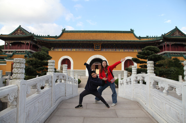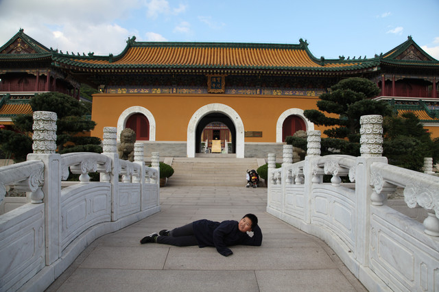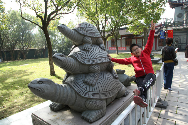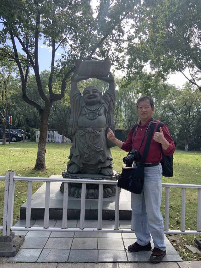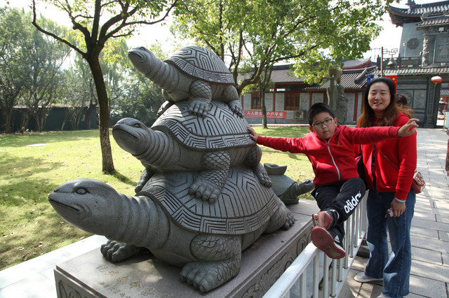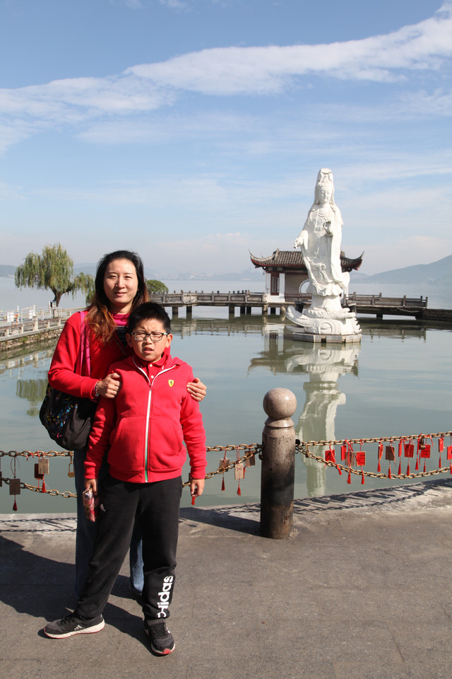 顺着路牌指示,我又去观瞻了布袋和尚的法像以及台湾文献初祖沈光文先生塑像,然后,徒步走回到小普陀景区的出口,龙太子和妈妈外婆早就在等我了。