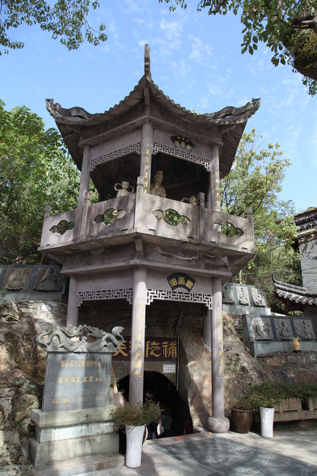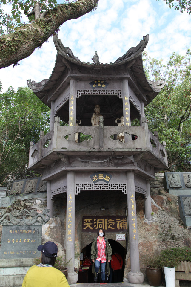 “补陀洞天”,是南宋丞相、大学士史浩(字岩之)为圆八十老母欲亲往普陀山进香的夙愿,而在霞屿山仿普陀山的梵音洞,人工开凿石洞而成的,距今已有近800年历史。因为石洞在先霞屿寺在后,更因此洞求子甚灵而在当地名声鹊起,号称“小普陀”。
