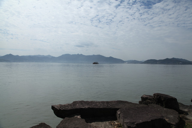 等了四十多分钟,我们终于上车,半个多小时后回到码头。买好开往朱家尖蜈蚣歭码头的船票。
