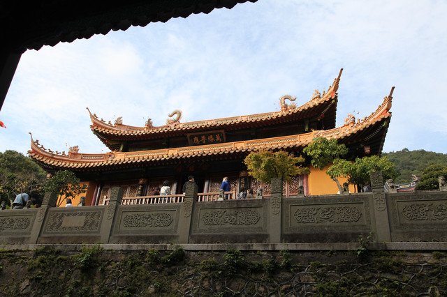 穿过玉佛殿继续拾级而上,跨上又一个更高的新台基,这就是法雨寺的主殿——九龙宝殿。