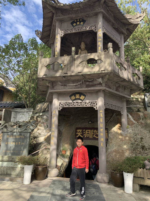 石窟上雕刻着仿洛阳龙门石窟最大的卢舍那佛而兴建的宝陀石窟佛像群,佛像精美,表情鲜活,造型生动。其中,卢舍那佛的塑造,十分传神,龙太子今年7月暑假去过龙门石窟,一眼就认出来了。