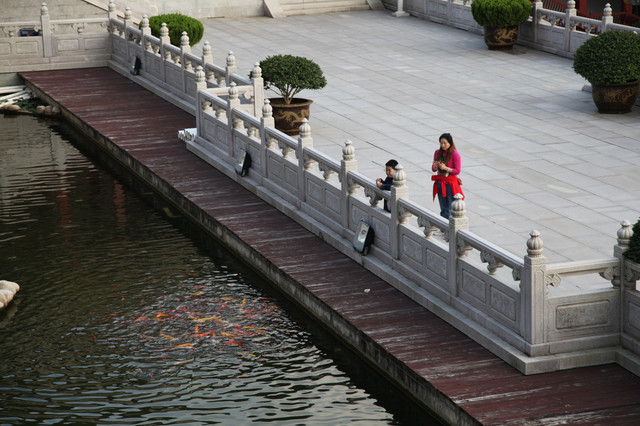 走过放生桥,望着一池清澈透明的池水,你的内心会萌生一种清凉幽静自由的感觉。池中自由自在欢快游嬉的金鱼、锦鲤,恰似你此刻内心的共鸣。