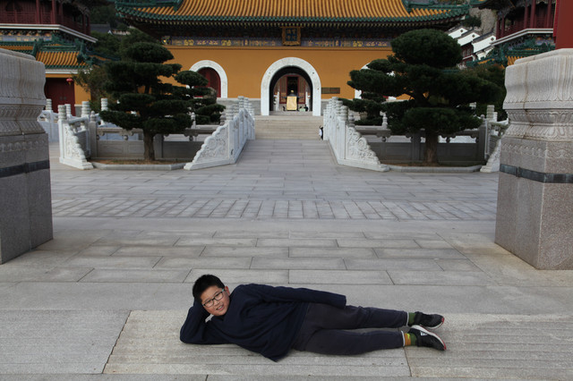 我明白,这小家伙还没拍够呢。我掏出大相机,龙太子还不停地变换身姿,一会说“卧佛”,一会说“坐佛”,我忍住不笑,只是按动快门咔嚓咔嚓。