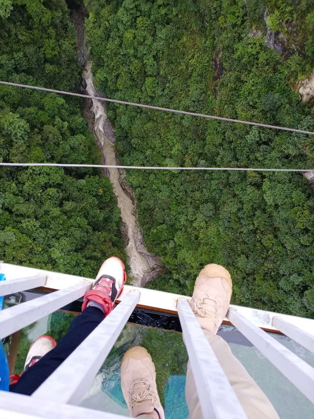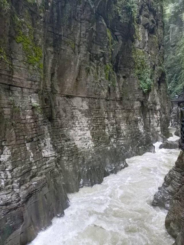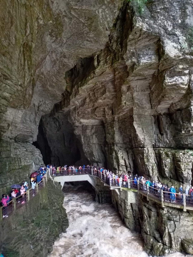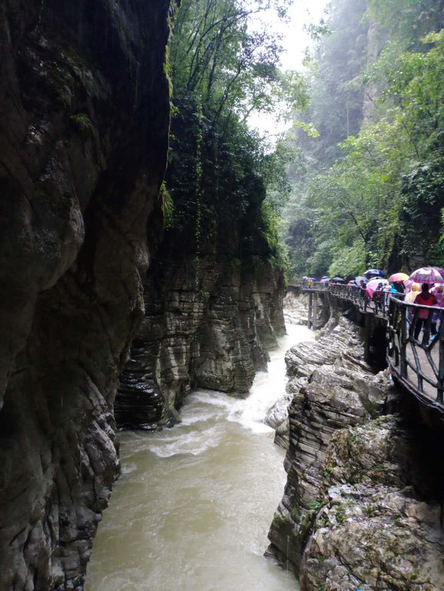 10.5 雨最大 ,游玩地心谷。国庆期间一直是下雨,与大峡谷恰恰相反,沿着绝壁栈道一直向下,河流翻滚,江水澎湃,很是壮观,因为雨天影响心情。门票是免费的,玻璃栈道、天梯、毛毯梯都是套票,一人140元。