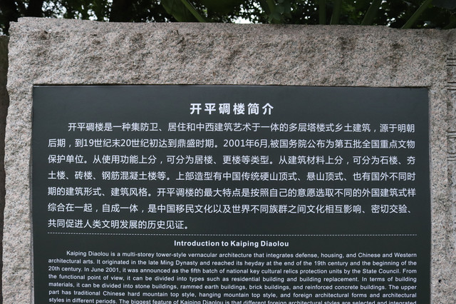 我以前听说过开平碉楼,但并不了解,直到读完了几本关于开平碉楼的书,才知道开平碉楼在中国建筑史,乃至世界建筑史上独特的地位。开平碉楼于2007年列入世界文化遗产,也是广东省境内唯一的世界文化遗产。不过真正让开平走入公众视野的,并不是列入文化遗产这件事,而是2010年上映的电影《让子弹飞》主要取景于开平碉楼。
