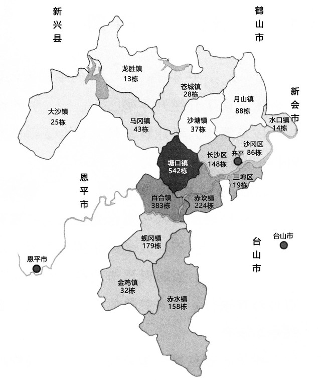 于是从20世纪初开始,开平的广大华侨把多年的积蓄投入到改善家乡亲人生活与家乡建设之中。开平的众多碉楼,除了一些在国外请专业的建筑设计师画好图纸带回来建成,绝大多数都是开平当地的乡村工匠参考华侨从国外寄回来的明信片建成的。