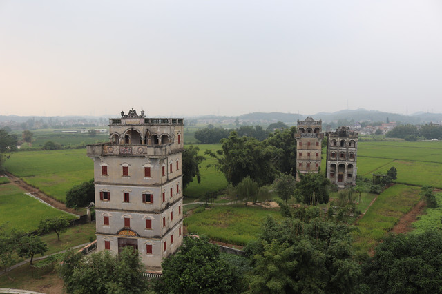 走在广东江门五邑侨乡的乡间小路上,阳光,竹林、河流、稻田构成一幅美丽的乡村田园风景,这和许多中国南方小镇相比,这里最大的不同之处在于建筑太奇特了,随处可见一座座具有浓郁西方韵味的建筑,有古罗马、拜占庭、哥特、巴洛克、伊斯兰等多种西洋风格,让人如置身异国,这些建筑就是开平碉楼。