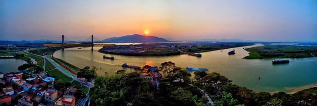 五显古庙、思贤滘、北江胜景……静静走着,静静看着来往的船只,惬意的生活画面就是这个模样。沿着江边,来到“三江汇流 湾区之源”墙饰景观下先留下倩影,再一口气登山,不到十分钟即可到达思贤阁。