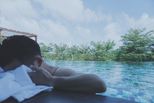 看到很多世界各地绝美的无边泳池,总觉得遥不可及,这次可以放肆的打卡一下迎宾馆无边海景独栋别墅区270°的无边泳池了,承包了正片蓝天白云。