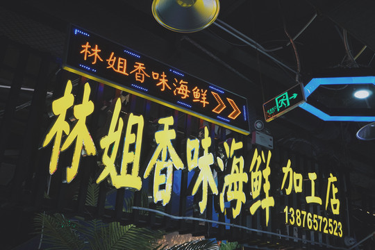 这里位于奥莱内的海鲜加工广场,逛街吃海鲜两不误。大部分餐厅都是做海鲜加工的。也就是说,你需要自己购买海鲜,然后到他们店里选择海鲜的做法。如果怕称不准,可以自带个小电子秤,还有记得把装海鲜的袋子底下扣个小洞,别不在乎,这个小技巧可是真能省银子的呢!