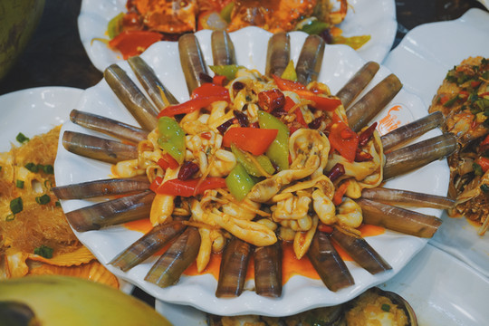 强烈推荐:辣炒螃蟹:膏满肉肥,香辣味真的适合我们成都的朋友;粉丝蒸扇贝;红烧蛏子:这个季节蛏子太肥了,这道菜是最欣喜和值得回味的;椒盐皮皮虾:味道好吃到飞起,适合喝听瓶酒啊。