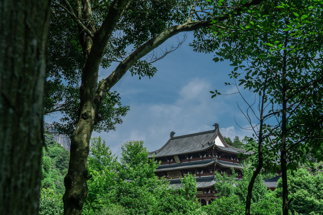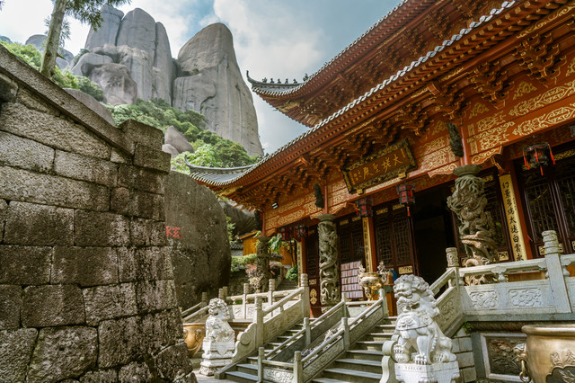 从夫妻峰广场前行两百米便能看到国兴寺,石奇、摩尼宫、国兴寺被称为福建太姥山的三绝。其中,始建于唐朝的国兴寺在宋朝的时候就被大火烧毁,现在建立在遗址上的寺庙是1992年修建的,但是在地下仍然保留着大量文物。