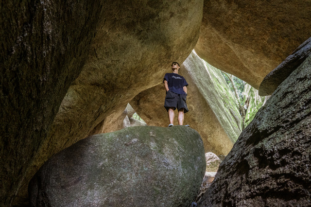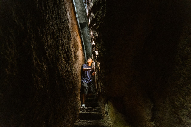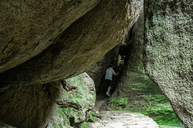 太姥山是国内拥有最多洞道的山,100多处岩洞纵横交错,一线天、七星洞、通天洞、葫芦洞等,时侧时爬,很多处还要收腹提臀才能通过,洞内风景也是神秘诱人妙趣横生,所以一定要轻装上山,山上啥都有,爬山时尽量穿耐脏的衣服,因为穿洞很容易刮蹭到衣服,再瘦的人也无法避免。