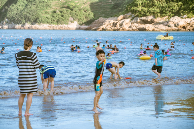 牛郎岗,沙滩平坦、明净,环山绿树成荫,周围礁石造型各异,尤其到了傍晚时分,惬意舒适的不想离开。