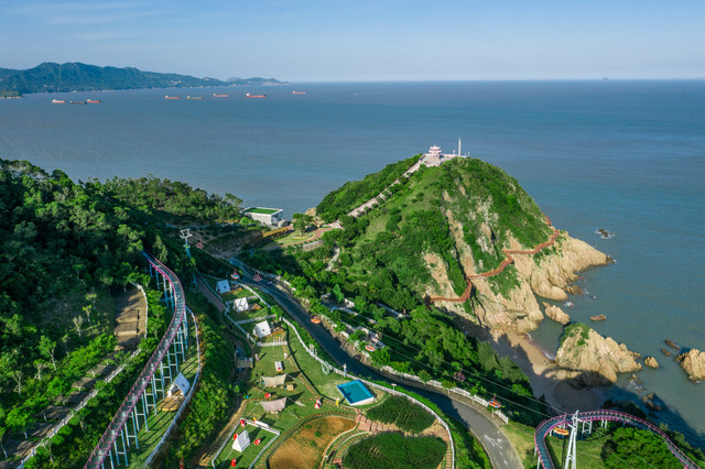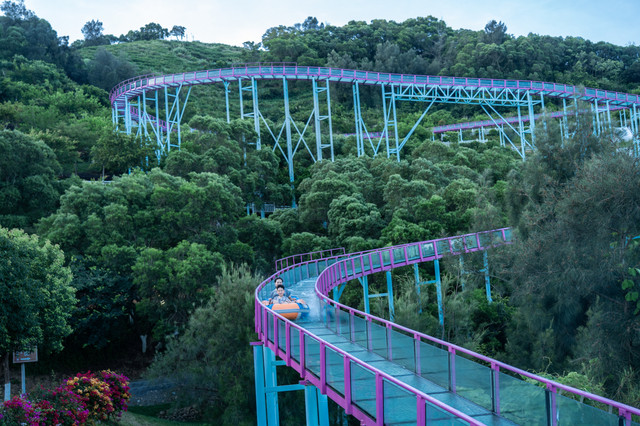 一侧山上有个玻璃滑道漂流,从高处顺流而下正对着大海,很刺激,很享受。