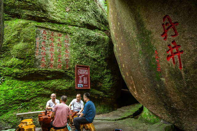 距离悬空铜殿不远还有一处丹井,坐在山洞里喝茶也是妙趣横生。“福鼎白茶”的始祖绿雪芽野生古茶树也在附近,相传太姥娘娘手植。