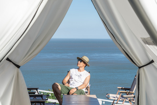 山腰有个露营基地,很大一片绿草地,正对着大海,感觉睡在海边悬崖边上露营,风景很美,还有很多网红打卡,拍照很出片,感觉是在国外度假。