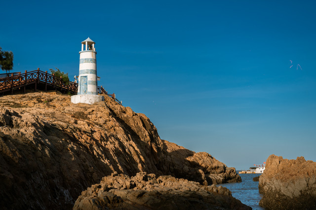 2、海边礁石上有个灯塔,背靠大海,很适合拍打卡照,非常文艺。