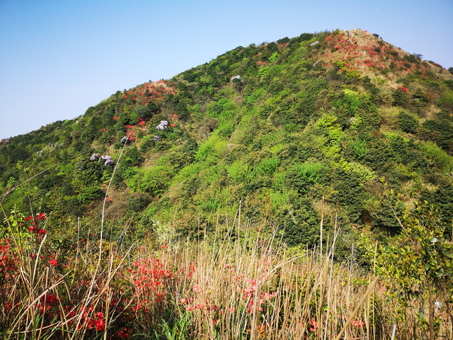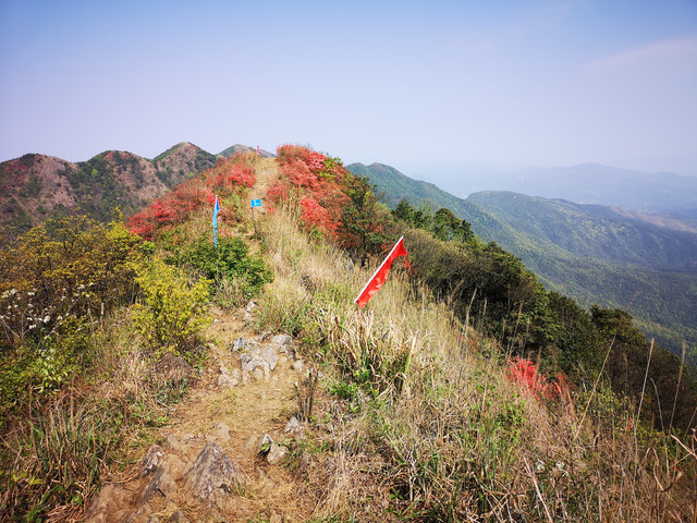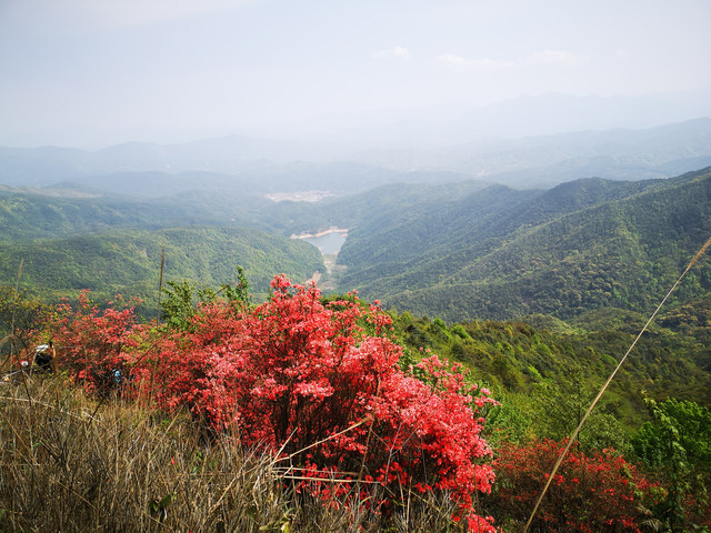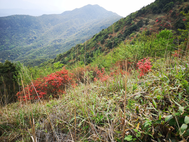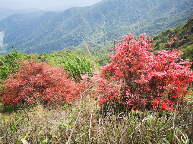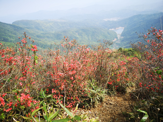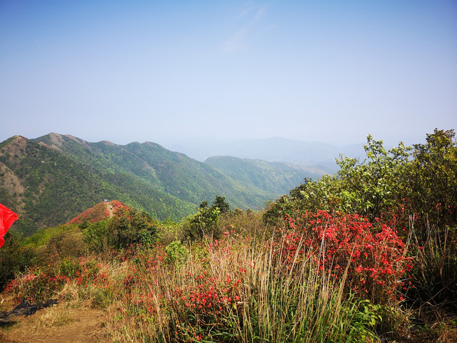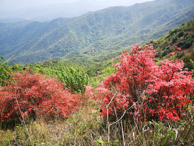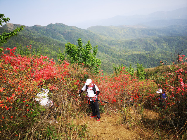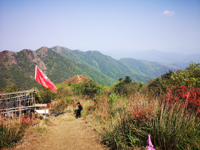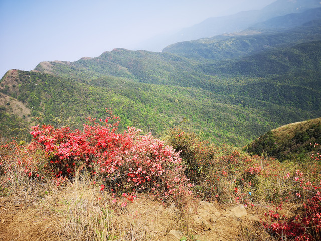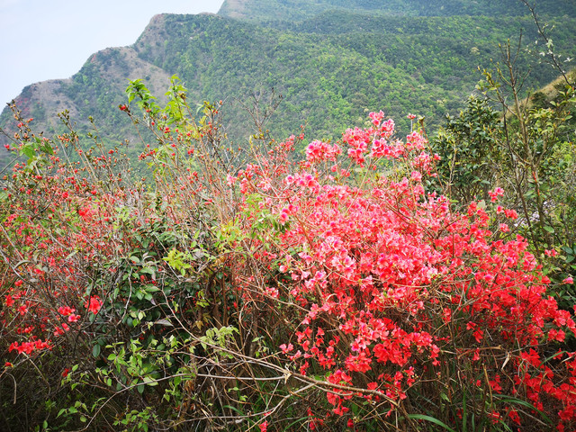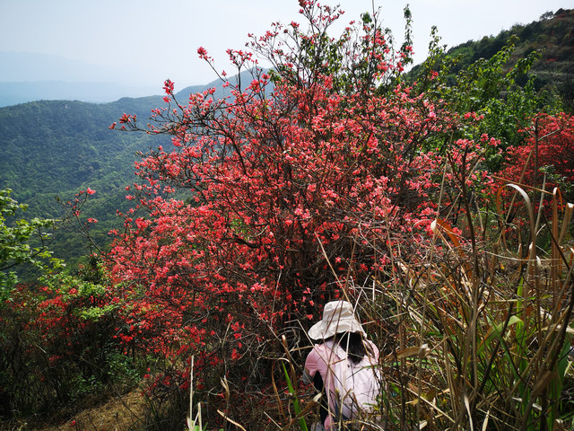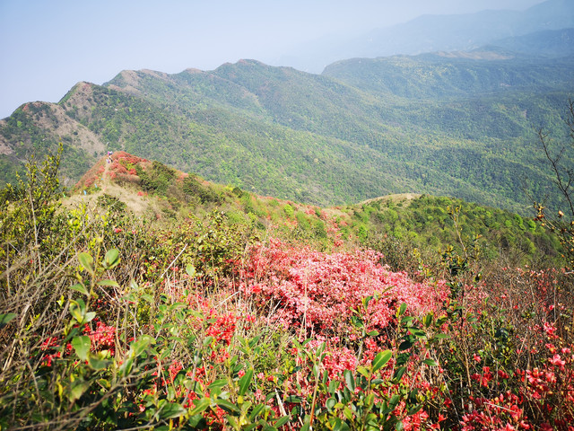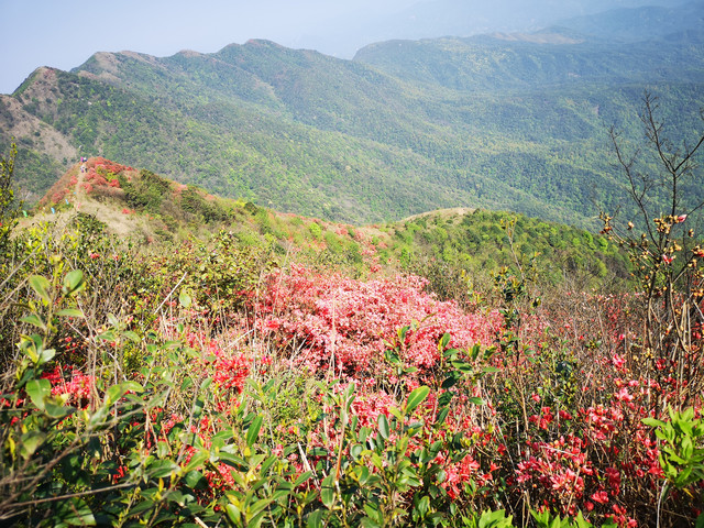 广州从化通天蜡烛山,海拔1047米,每年3底4月初,山顶处开满杜鹃花,远远望去,漫山遍野辉映火红一片,故称蜡烛山。山路崎岖,全程是没开发的山野泥路,上山3小时,下山2小时,需要消耗较多体力,适合爬山徒步赏花爱好者。