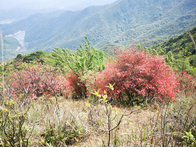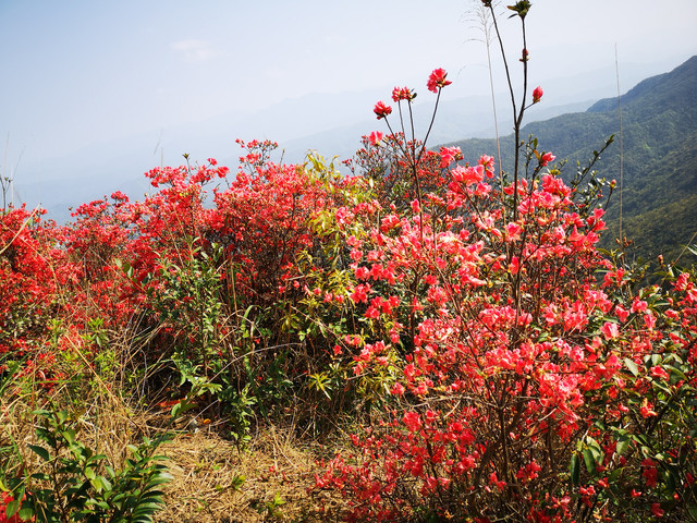 山顶处,漫山遍野的鲜红杜鹃花,十分状观