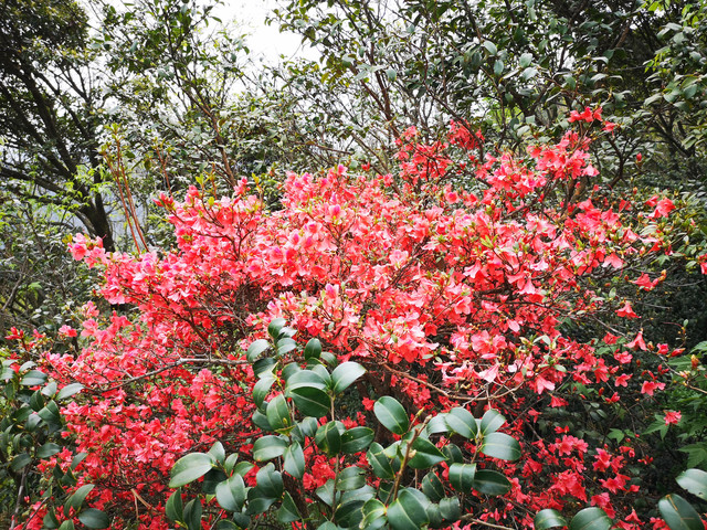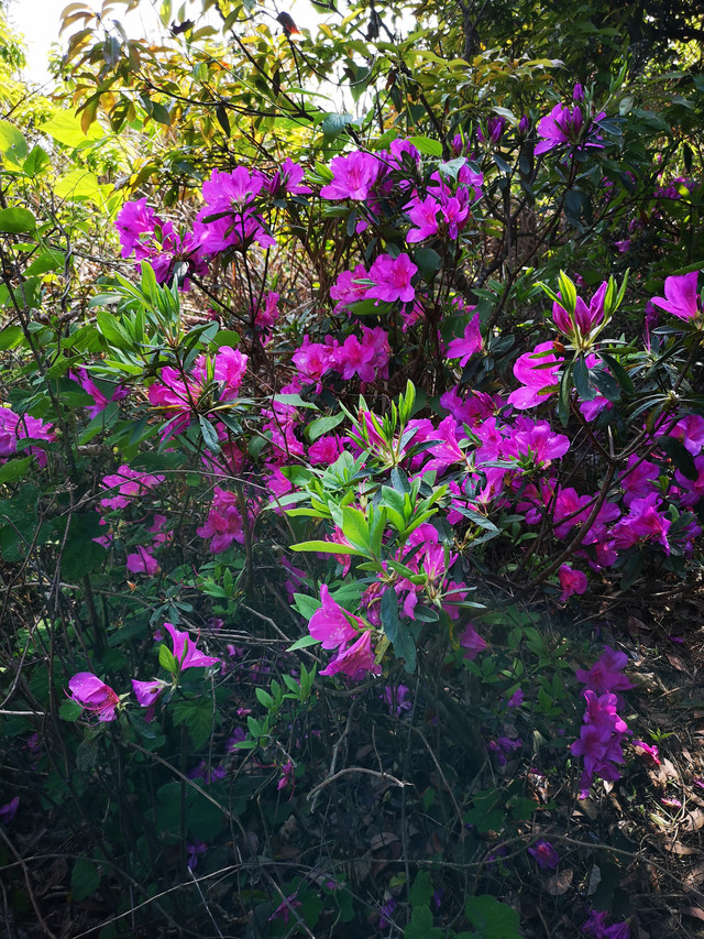 路边开始出现一簇一簇的杜鹃,大多数是鲜红色,还有粉红和白色的,大家纷纷举起相机手机摆好最靓的POSS在花丛间拍个不停。