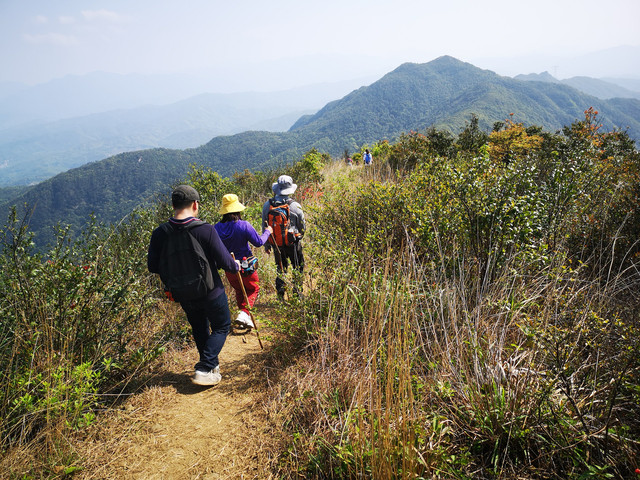 在山顶平台上,极目远眺,看看风景,拍拍照,吹吹风,然后从另一边下山,不用走回头路。上山这边的路比较陡峻,路程短一些,下山这边相对平坦一些但远3,4公里。