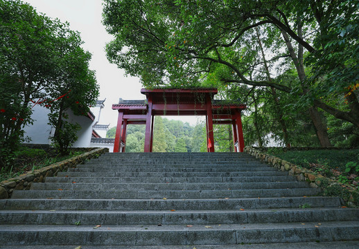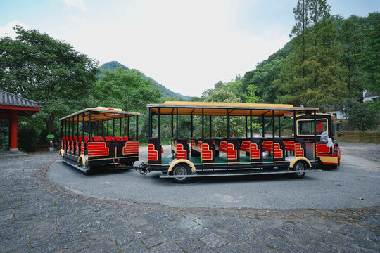 下了船后,就会看到一条石阶,最上边是一座高高的木质牌坊。走上去后,等待我们的是一辆小火车。