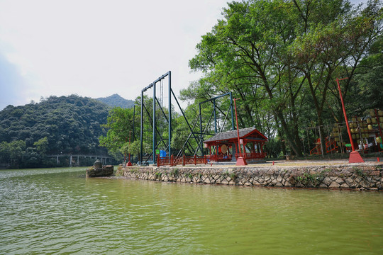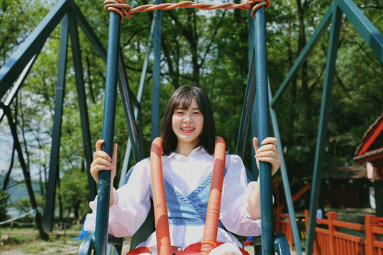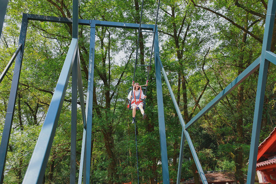 说起来,子胥野渡并不算大,却有一个网红级别的项目:单人江山秋千、双人软索秋千。虽说没有悬崖秋千那么恐怖,但也足够刺激,先是缓缓地升到最高处,并在一瞬间“弹射”出去,随后开始做往复运动,堪称跳楼机与大摆锤的组合。