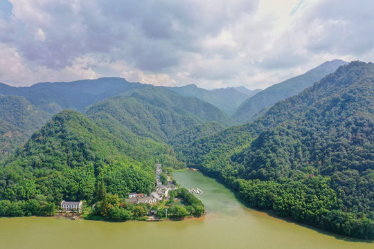 三都渔村三面低山环绕,一面临江,独特的地理位置造就了优越的居住环境,一幢幢民居错落有致,白墙青瓦,掩映在富春江畔的绿树丛中,别具一格。