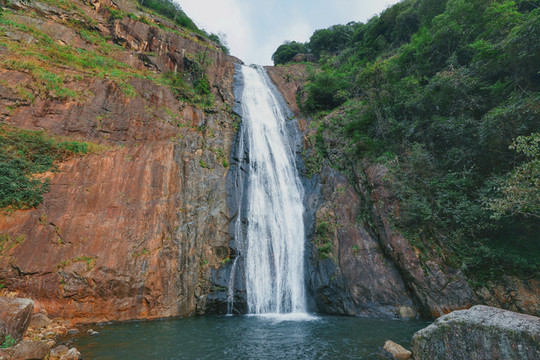 当然,最抢眼的还是山顶那一道气势如虹的飞瀑,瀑布高上百来米,雨季时,瀑宽可超10米,瀑布口是一个葫芦形状的,故而得名“葫芦瀑布”。