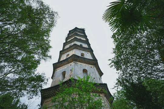 南峰塔为七层八面砖塔,高达57米,塔内有石级盘旋而上,可登上塔顶。