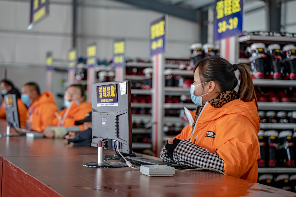 专业级滑雪板、颜值超高的全方位保暖防水滑雪装、手套头盔墨镜,这里有着超全的滑雪装备,无需携带任何东西,来到这里便能体验在雪地上“飞翔”的速度与激情。为了能整个入场时间缩短,我个人推荐的顺序是先去办卡,办完卡直接去领雪服雪鞋,雪服可以选自己喜欢的颜色,换好衣服和鞋,就可以去领雪帽、雪镜、手套,雪镜晴天必备的,雪镜可以防止雪盲,而且拍照也是超酷。