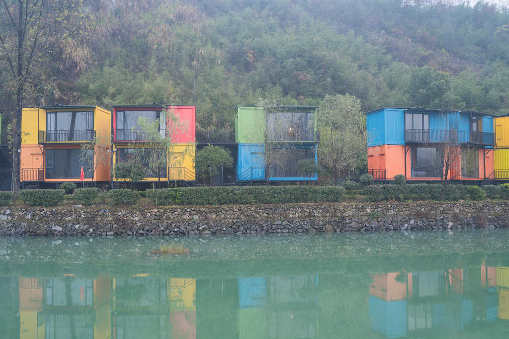 由于雪场坐落在深山之中的缘故,所以来这里的住宿选择性不是很多,雪场附近也只有半山腰村里开的民宿,个人不太推荐,我们此行选择的是位于山脚下的在水一方集装箱民宿,新颖的集装箱式房间,颇有韵味的装修,以及在水一方的环境,都是非常不错的居住之所。