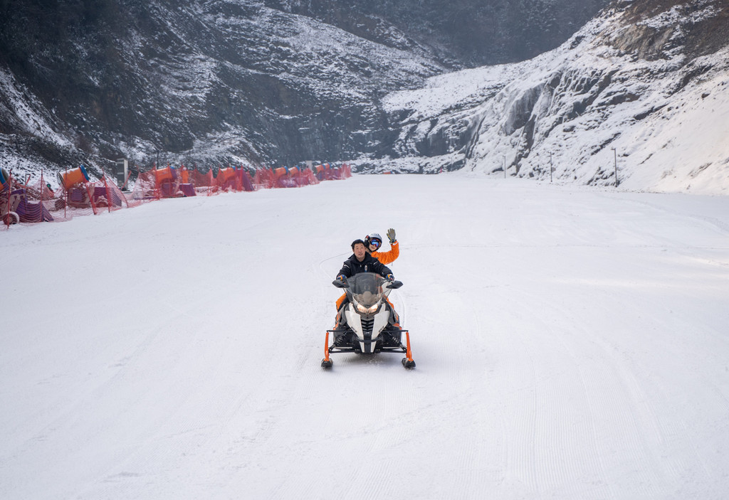 在桐庐生仙里国际滑雪场,不仅能滑雪,还有着诸多有意思的的雪上运动非常值得尝试一下的,比如充满了童趣的雪上轮胎,一个小伙伴坐在轮胎上面,另一个小伙伴在前面拉,非常有趣;亦或是炫酷无比的雪地摩托,雪地摩托在雪场上如履平地,即使是上下中级滑道都非常轻松,也是非常值得尝试的体验。