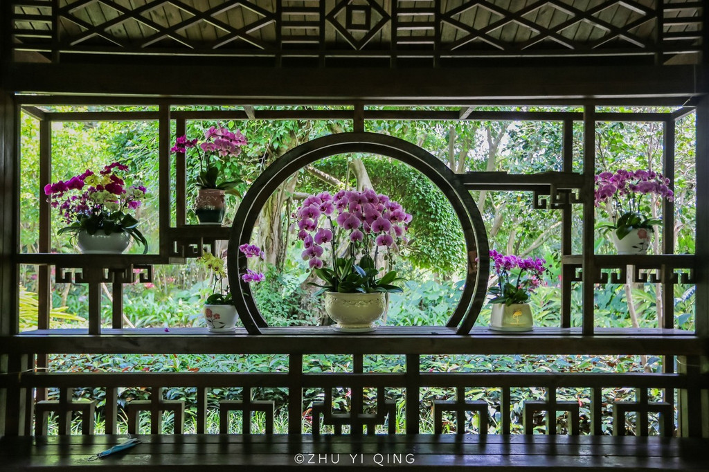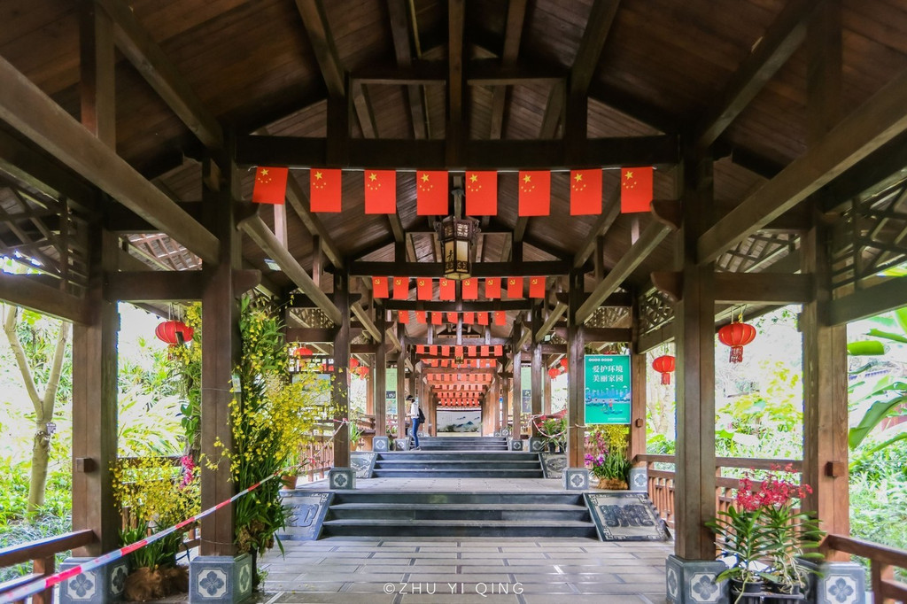 景区的建造风格是保留了明代的风格,明代的房屋风格,八角叠檐,青砖碧瓦都非常的有氛围,来到名叫友谊长廊的建筑物里,各种花卉盆栽在两旁娇艳开放着,给这个友谊长廊增添美感,随手拍一个角落都是很唯美的感觉。房梁上的五星红旗随风飘扬,不愧是友谊长廊,这样的设计确实很细心,从细节中可看出中国东盟友谊园的真诚。