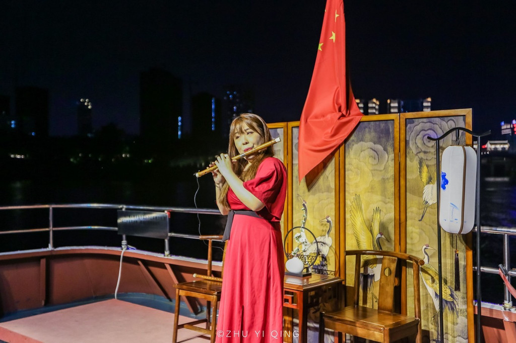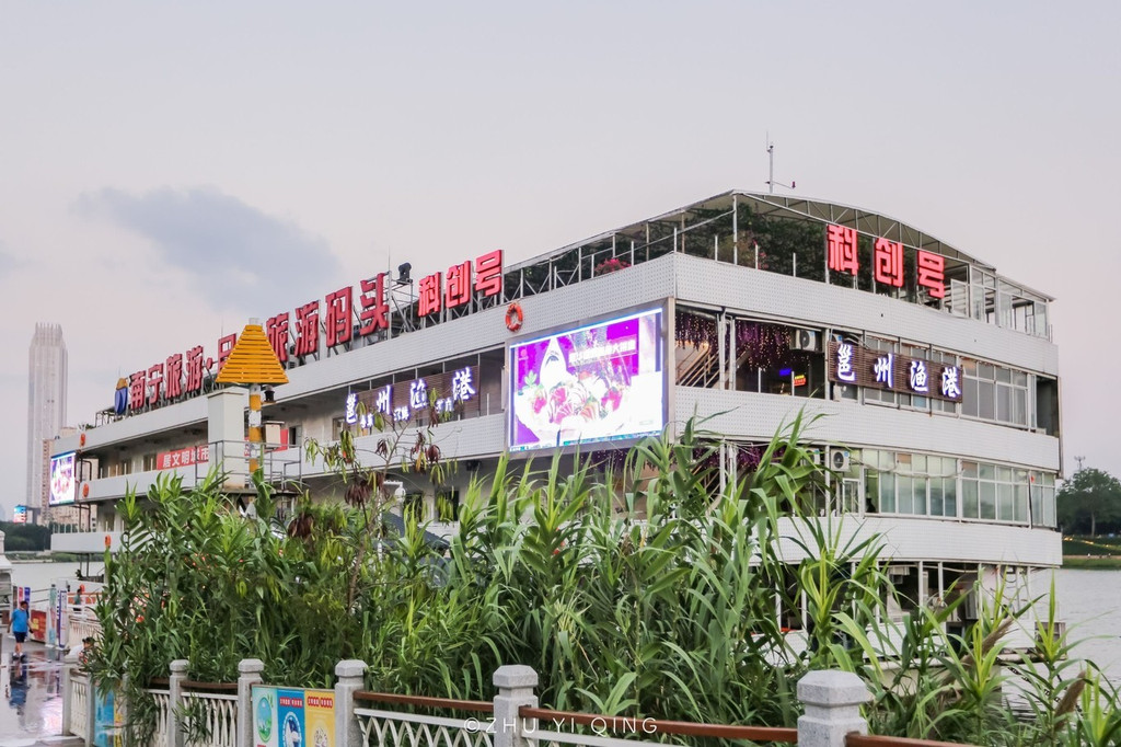 我们乘坐游船游览着邕江的夜色,游船也装修得非常漂亮,夜游时间有一个小时,是从民生码头出发,终点是葫芦顶大桥,到了终点后折返,所以邕江两岸的夜色可以欣赏两次。在游船上看两岸的美景,游船上还会有人表演节目给游客们助兴,整趟旅程也是丰富多彩。